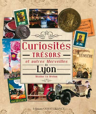 Conception de la couverture, de la maquette intérieure et montage de l'ouvrage "Curiosités, trésors et autres merveilles de Lyon" de Nicolas Le Breton aux éditions Ouest France.